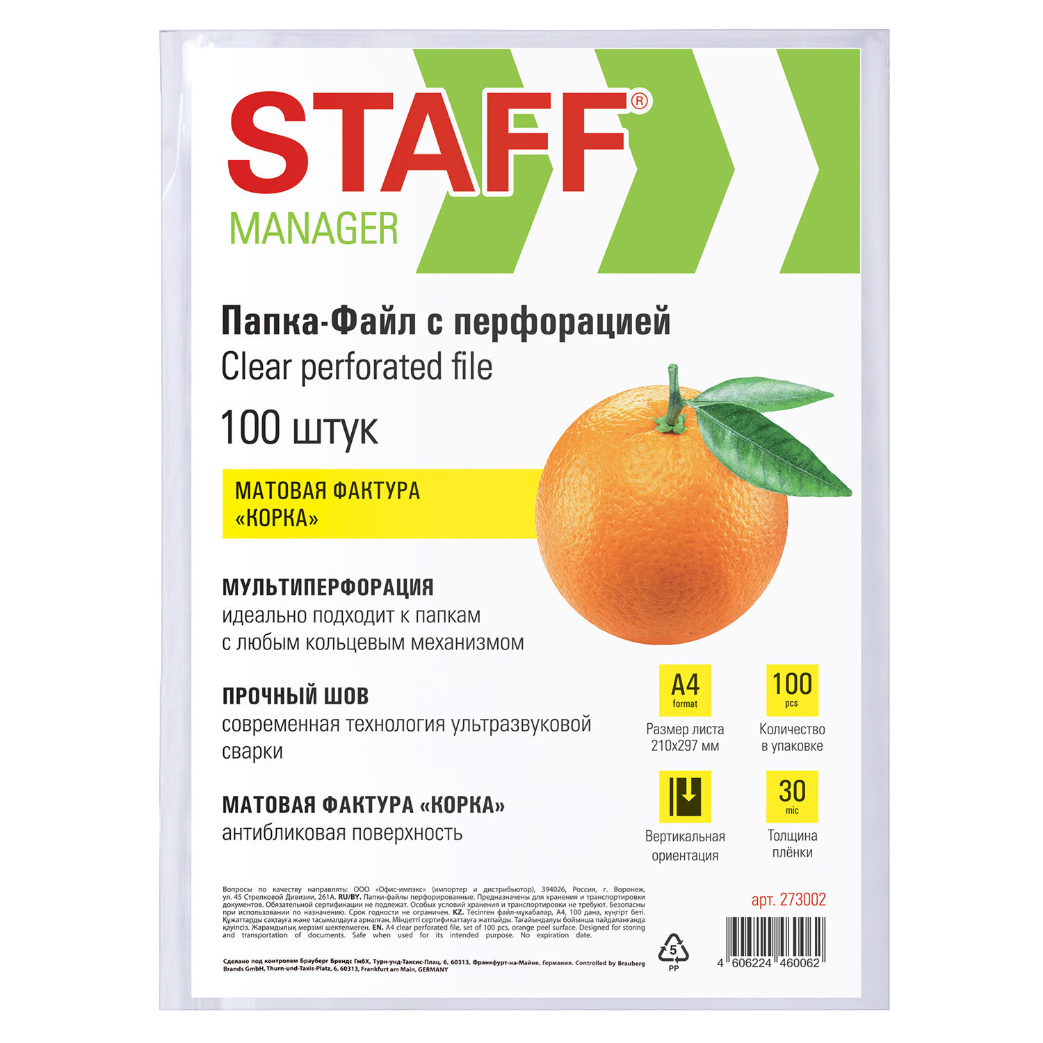 Папки-файлы перфорированные А4 STAFF "ЭКОНОМ", КОМПЛЕКТ 100 шт., матовые, 30 мкм Код товара: 273002 253,31 ₽ Купить Производитель:STAFF Перфорированные папки-файлы STAFF "ЭКОНОМ" обеспечивают сохранность бумажных носителей, защищают их от истирания, увлажнения, загрязнения, при этом обладают требуемыми параметрами прочности и прозрачности, позволяют систематизировать все важные документы. Перфопапки формата А4 с вертикальным размещением и универсальной перфорацией имеют матовую фактуру и прочные швы. Толщина пленки – 30 мкм, что подходит для хранения до 20 листов в 1 папке-файле. В комплекте 100 шт. Товар относится к сегменту "ЭКОНОМ" и имеет оптимальное соотношение цены и качества.Производство: КитайФормат: А4Количество в комплекте: 100 шт.Толщина пленки: 30 мкмОриентация: вертикальнаяФактура: "апельсиновая корка"Товар относится к сегменту ЭКОНОМ : даСерия: ЭкономЦвет: прозрачныйВес: 246 грРазмер упаковки: 1.1 × 30.4 × 24.2 смОбъём: 0.0006 м3Промежуточная упаковка: 30 штТранспортная упаковка: 30 штШтрих-код: 4606224460062 Файлы Сертификат-1.jpg Сертификат-2.jpg Сертификат-3.jpg Сертификат-4.jpg Сертификат-5.jpg Сертификат-6.jpg Сертификат-7.jpg Сертификат-8.jpg Сертификат-9.jpg Сертификат-10.jpg Сертификат-11.jpg Сертификат-12.jpg Сертификат-13.jpg Сертификат-14.jpg Сертификат-15.jpg Сертификат-16.jpg Сертификат-17.jpg Сертификат-18.jpg Сертификат-19.jpg Сертификат-20.jpg Сертификат-21.jpg Сертификат-22.jpg Сертификат-23.jpg Сертификат-24.jpg Сертификат-25.jpg Сертификат-26.jpg