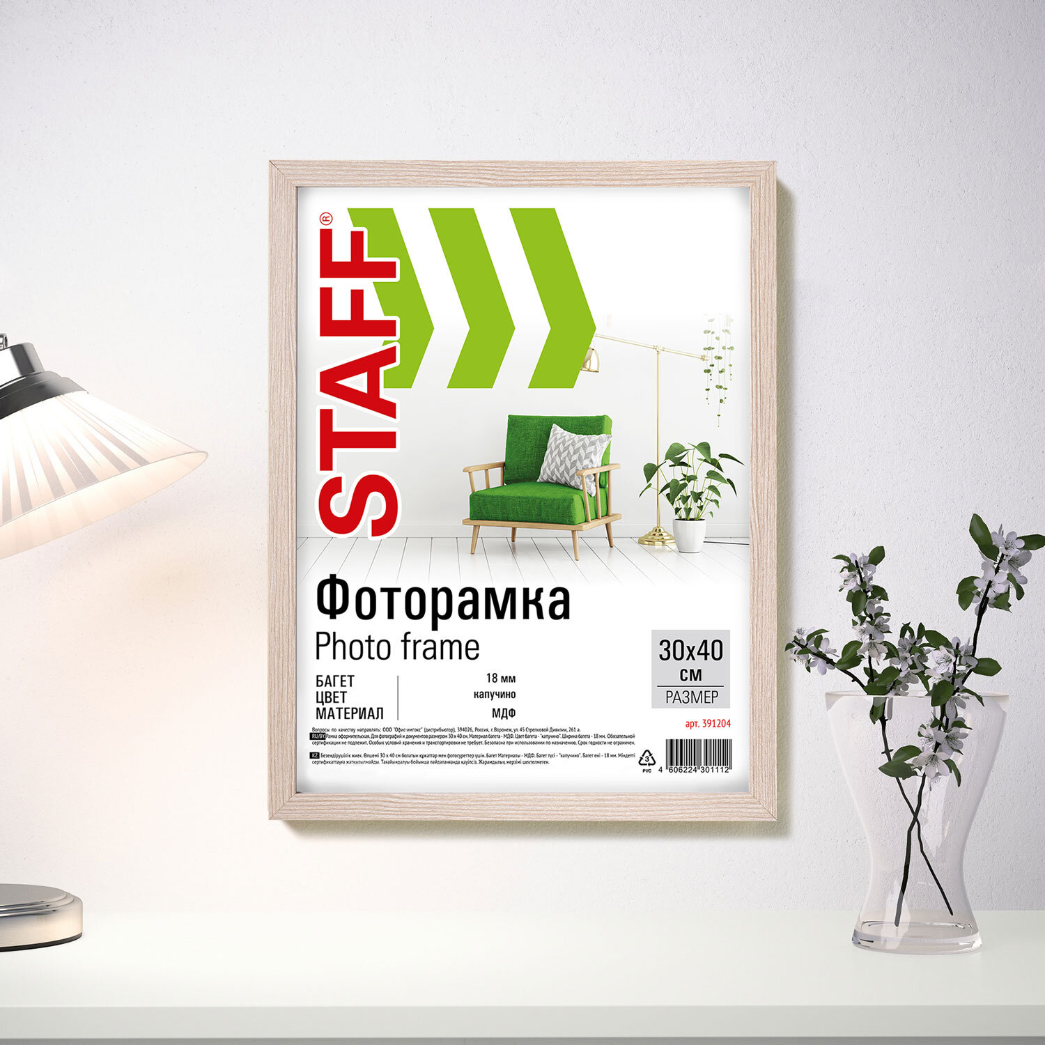 Рамка 30х40 см, небьющаяся, STAFF "Grand", багет 18 мм, цвет "капучино", МДФ Код товара: 391204 512,16 ₽ Купить Производитель:STAFF Рамка STAFF "Grand" с фотографиями, наградами, дипломами, сертификатами и другими ценными документами гармонично будет смотреться на стенах дома и офиса, салонов и предприятий, магазинов и различных учреждений. Рамка формата А3 (30х40 см) выполнена из материала МДФ в цвете "капучино", за счет чего отлично впишется в домашний и деловой интерьер. Имеется возможность вертикального и горизонтального подвеса. Ширина багета – 18 мм. Аккуратный вид достигается благодаря стеклянной вставке. Микрогофрокартон обеспечивает плотное прилегание и отсутствие в будущем деформации содержимого в рамке. Поставляется в термоусадочной пленке, которая гарантирует сохранность рамки при транспортировке, отсутствие сколов и потертостей. ВНИМАНИЕ! На данный момент производится перевод данного артикула со стекла на пластиковую вставку. На переходный период допускается поставка данной продукции как со стеклом, так и с пластиком.Производство: РоссияРазмер: 30х40 смНазначение: для фотографий, для дипломов, сертификатов, грамот, для студийных и оформительских работСерия: GrandДизайн: СовременныйМатериал рамки: МДФЦвет рамки: бежевыйВозможность размещения: вертикальное, горизонтальноеШирина багета: 18 ммМатериал вставки: стекло/пластиковая вставкаМатериал подложки: микрогофрокартонУпаковка: термоусадочная пленкаВес: 340 грРазмер упаковки: 1.1 × 42.9 × 33 смОбъём: 0.0021 м3Промежуточная упаковка: 15 штТранспортная упаковка: 15 штШтрих-код: 4606224301112 Файлы Сертификат-1.jpg Сертификат-2.jpg Сертификат-3.jpg Сертификат-4.jpg Сертификат-5.jpg Сертификат-6.jpg Сертификат-7.jpg Сертификат-8.jpg Сертификат-9.jpg Сертификат-10.jpg Сертификат-11.jpg Сертификат-12.jpg Сертификат-13.jpg Сертификат-14.jpg Сертификат-15.jpg Сертификат-16.jpg Сертификат-17.jpg Сертификат-18.jpg Сертификат-19.jpg Сертификат-20.jpg Сертификат-21.jpg Сертификат-22.jpg Сертификат-23.jpg Сертификат-24.jpg Сертификат-25.jpg Сертификат-26.jpg