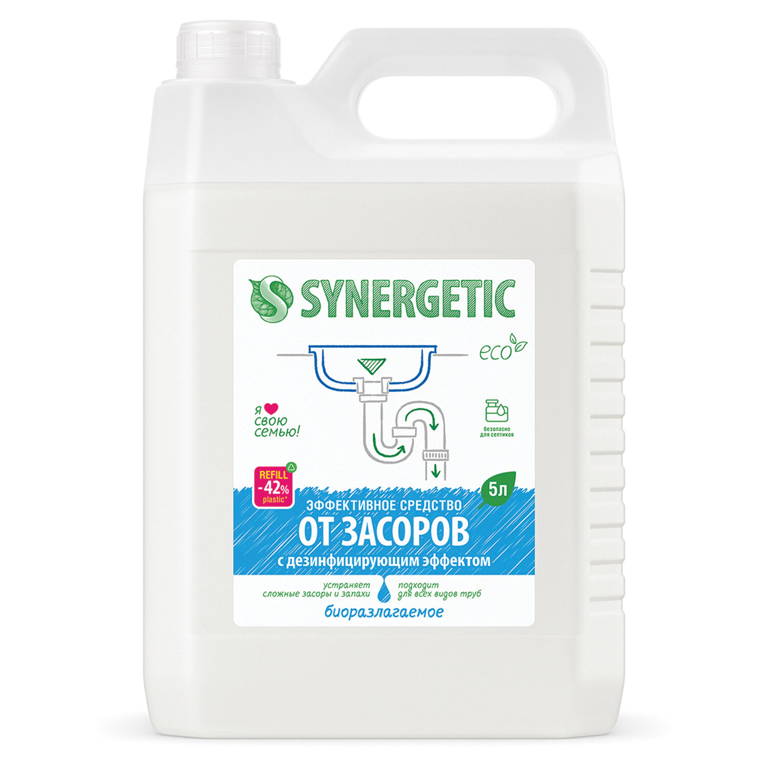 Средство для прочистки канализационных труб с дезинфецирующим эффектом 5 л SYNERGETIC, биоразлагаемое, для всех видов труб и септиков Код товара: 607479 680,22 ₽ Купить Производитель:SYNERGETIC Средство для очистки и профилактического ухода за канализационными трубами. Эффективно растворяет в стоках волосы, остатки пищи, жир и другие загрязнения. Нейтрализует неприятные запахи. Средство безопасно для всех видов труб, в т.ч. пластиковых. Концентрированное высокоэффективное средство для удаления всех видов засоров с дезинфицирующим эффектом. Эффективно устраняет запахи, прочищает засоры со стоячей водой. 100% биоразлагаемость в воде, не вредит микрофлоре септических установок. Применение: Залить средство в канализационную трубу (при сильном засоре – непосредственно в воду) и оставить на 30-40 минут. Для профилактики засоров – 250 мл на одно сливное отверстие. При сильных засорах – от 500 мл до 1 л. Не смешивать с кислотой. При применении средства использовать перчатки, избегать попадания в глаза и на кожу. Состав: структурированная вода с ионами серебра, комплекс растительных А-тензидов, сода.Производство: РоссияФорма выпуска: концентратОбъем/вес: 5000 мл/гСерия: PIPE CLEANERМатериал труб: универсальныйЭффект от использования: уничтожает микробов, устраняет засоры, устраняет неприятный запахЭффективен в холодной воде: даБез хлора: даУпаковка: канистраСрок годности: 24 месВес: 6,27 кгРазмер упаковки: 32 × 27.8 × 18.5 смОбъём: 0.007 м3Промежуточная упаковка: 4 штТранспортная упаковка: 4 штШтрих-код: 4623720498023 Сертификат-1.jpg Сертификат-2.jpg