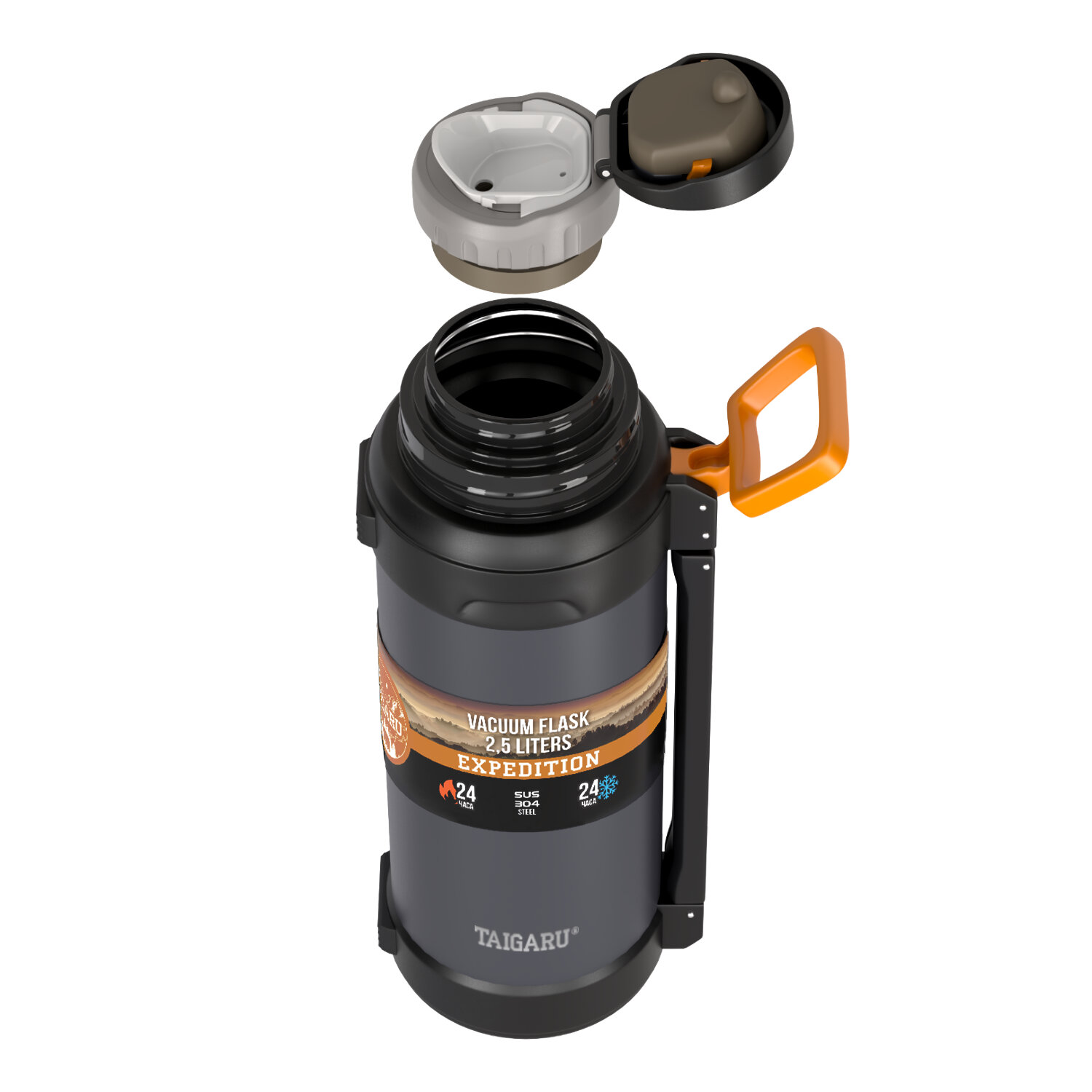 Термос 2,5 л TAIGARU (ТАЙГАРУ) EXPEDITION, нержавеющая сталь SUS304, 2 кружки, 2 ручки, ситечко, графитовый Код товара: 700318 1 586,2 ₽ Купить Производитель:TAIGARU Удобный термос TAIGARU с двумя эргономичными ручками – идеальное решение для путешествий, семейных выездов или пикников. Сохраняет температуру до 24 часов, легко переносится благодаря надёжной ручке. Большой объём делает его отличным выбором для компании. Термос TAIGARU EXPEDITION сделан из нержавеющей стали SUS304. Использование качественных материалов, вакуумная конструкция с двойными стенками и надёжные силиконовые уплотнители делают термос полностью герметичным и безопасным для здоровья, а также позволяют удерживать температуру до 24 часов и предотвращают протекание. Удержание температуры также зависит от условий использования: частоты открывания, времени нахождения в открытом состоянии, температуры окружающей среды, начальной температуры наливаемой жидкости. Корпус имеет порошковое покрытие графитового цвета, которое не только обеспечивает термосу стильный дизайн, но и препятствует появлению мелких царапин при долгосрочном использовании. Термос TAIGARU снабжен черным пластиковым каркасом, имеющим две удобных раскладывающихся ручки для удобной переноски. В комплект входят две крышки-кружки: основная и дополнительная пластиковая. Конструкция термоса включает в себя продуманную систему герметизации: эргономичная винтовая пробка с удобным кнопочным механизмом обеспечивает лёгкость использования, а высококачественные силиконовые уплотнители гарантируют абсолютную защиту от протекания. Особого внимания заслуживает встроенное фильтрующее ситечко, которое эффективно задерживает чайные листья и другие компоненты напитка, позволяя наслаждаться чистым и безупречным вкусом прямо из термоса. Термос TAIGARU высотой 37,5 см имеет диаметр горлышка 6,1 см, диаметр донышка – 12 см, а вместе с пластиковым каркасом – 13,7 см. Объем – 2,5 л.Производство: КитайОбъем: 2.5 лТип горла: узкоеНаличие ручки: даКомплектация: дополнительная кружкаСерия: EXPEDITIONВысота: 37.5 смДиаметр: 12 смЦвет: графитовыйМатериал: нержавеющая сталь 304Тип упаковки: картонная коробкаВес: 1,45 кгРазмер упаковки: 12.4 × 39.2 × 14.4 смОбъём: 0.0081 м3Промежуточная упаковка: 12 штТранспортная упаковка: 12 штШтрих-код: 4606224473598 Сертификат-1.jpg Сертификат-2.jpg