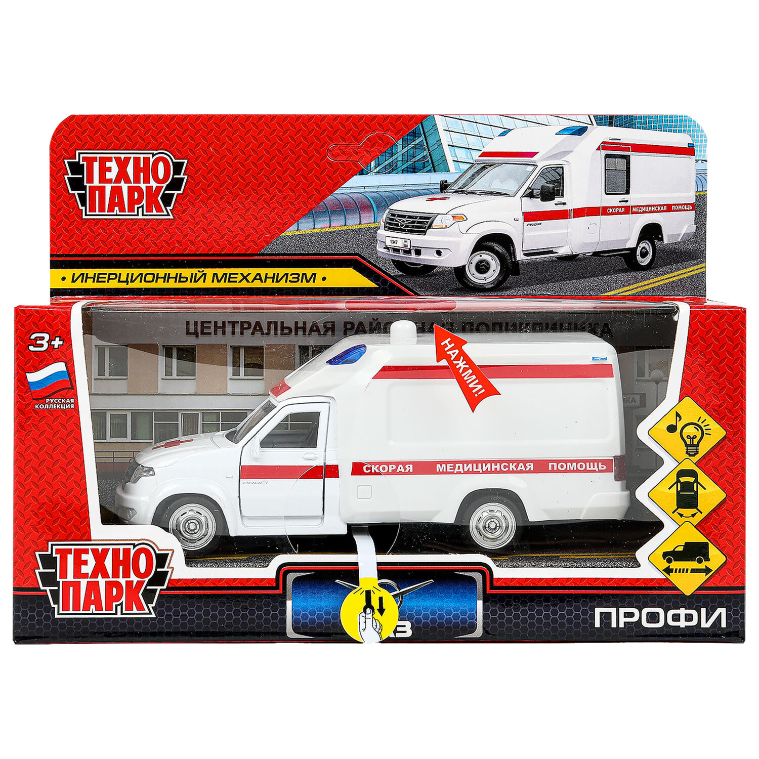 Машина металлическая коллекционная АССОРТИ 3, длина 10-15 см, инерционная, 10 видов, ТЕХНОПАРК, N-003 Код товара: 666673 591,65 ₽ Купить Производитель:ТЕХНОПАРК Коллекционная металлическая модель машины ТЕХНОПАРК порадует и ребенка, и коллекционера своим дизайном, скоростью и функционалом. Реалистичный дизайн модели позволит с головой погрузиться в игру, придумывая новые сюжеты. У машинки открываются двери и багажник, что делает её максимально похожей на настоящую. Можно заглянуть внутрь, чтобы убедиться, что каждая деталь отлично проработана. 10 видов машинок: ВАЗ-2106 "Жигули", ГАЗ-2401 "Волга", Газель 2705 (Скорая помощь), УАЗ (полиция), УАЗ (МЧС), Лада Гранта (Полиция), УРАЛ 4320 (военный), КАМАЗ (мусоровоз), ГАЗ-2401 "Волга" (милиция), самоходная гаубицы "МСТА". Товар поставляется без возможности выбора дизайна.Производство: КитайВозраст от: 3 летТип товара: машинка металлическаяПол: для мальчиковКоличество колес: 4 шт.Цвет: ассортиДлина: 15 смШирина: 7.5 смВес: 0.174 кгУпаковка: картонная коробка с европодвесомРазмер упаковки: 6.2 × 16.1 × 13.5 смОбъём: 0.0024 м3Промежуточная упаковка: 10 штТранспортная упаковка: 10 штШтрих-код: 4650250512363 Сертификат-1.jpg Сертификат-2.jpg Сертификат-3.jpg
