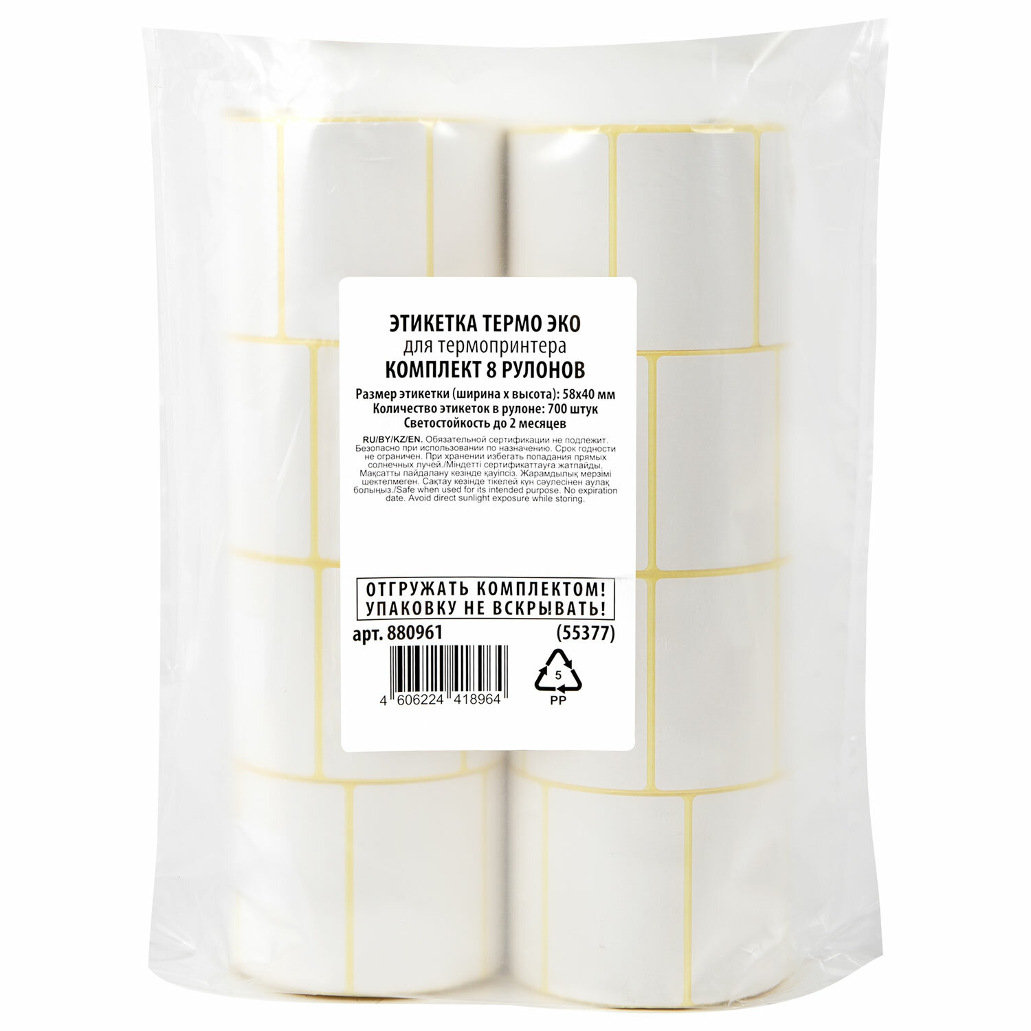 Этикетка ТермоЭко (58х40 мм), 700 этикеток в ролике, КОМПЛЕКТ 8 шт., светостойкость до 2 месяцев Код товара: 880961 1 152,43 ₽ Купить Производитель:ТЕРМОЭКО Самоклеящиеся этикетки предназначены для использования в термопринтерах. Изготовлены из высококачественной бумаги фирмы Fasson. Термоэтикетка ЭКО изготавливается из бумаги без защитного покрытия, поэтому применяется, в основном, в магазинах непосредственно перед самой продажей товара или используется для маркировки продуктов с небольшим сроком хранения.Производство: РоссияТип этикетки: термо ЭКОРазмер этикетки (ШхВ): 58х40 ммДиаметр втулки: 40 ммКоличество этикеток в рулоне: 700 шт.Диаметр ролика: 80 ммСерия: ЭкоЦвет: белыйСветостойкость до: 2 месяцевТип подложки: крафтТип клея: каучуковыйВес: 1,87 кгРазмер упаковки: 8 × 24.4 × 16.4 смОбъём: 0.0045 м3Промежуточная упаковка: 6 штТранспортная упаковка: 6 штШтрих-код: 4606224418964 Файлы Приложение-1.pdf Сертификат-1.jpg Сертификат-2.jpg Сертификат-3.jpg Сертификат-4.jpg Сертификат-5.jpg Сертификат-6.jpg Сертификат-7.jpg Сертификат-8.jpg Сертификат-9.jpg Сертификат-10.jpg Сертификат-11.jpg Сертификат-12.jpg Сертификат-13.jpg Сертификат-14.jpg Сертификат-15.jpg Сертификат-16.jpg Сертификат-17.jpg Сертификат-18.jpg Сертификат-19.jpg Сертификат-20.jpg Сертификат-21.jpg Сертификат-22.jpg Сертификат-23.jpg Сертификат-24.jpg Сертификат-25.jpg Сертификат-26.jpg