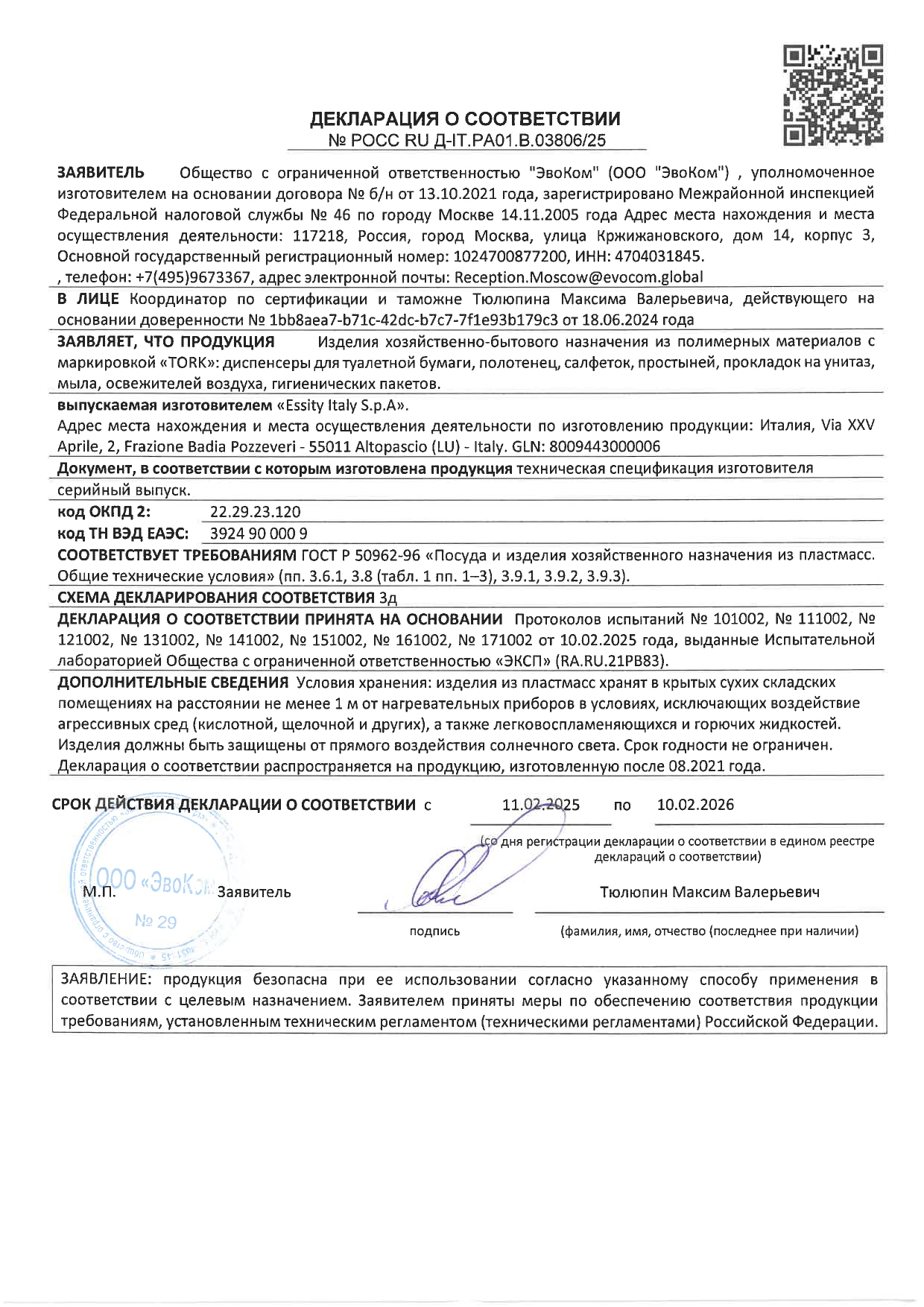 Диспенсер для косметических салфеток TORK (Система F1), настольный, белый Код товара: 601742 4 907,94 ₽ Купить Производитель:TORK Диспенсер для косметических салфеток вмещает 1 упаковку салфеток TORK. Закрывается без замка и ключа, есть возможность крепления на стену с помощью винтов или двусторонней липкой ленты. Производство: ИталияТип салфеток: косметическиеАртикул: TORK 270023Вмещает салфеток: 100 штРасположение: горизонтальноеСерия: OriginalДиспенсерная система: F1Ширина: 250 ммГлубина: 150 ммВысота: 58 ммМатериал корпуса: пластикПокрытие корпуса: глянцевоеЦвет корпуса: белыйВес: 434 грРазмер упаковки: 6.9 × 26.2 × 14.7 смОбъём: 0.0029 м3Промежуточная упаковка: 12 штТранспортная упаковка: 12 штШтрих-код: 7310791226903 Сертификат-1.jpg Сертификат-2.jpg Сертификат-3.jpg