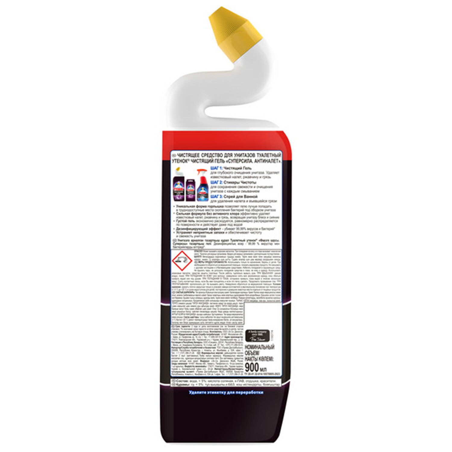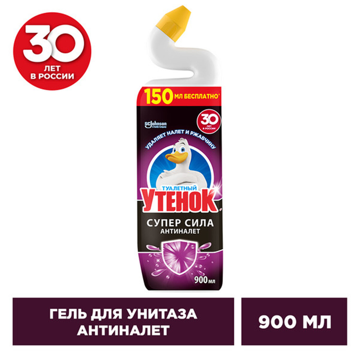 Средство для уборки туалета 900 мл, ТУАЛЕТНЫЙ УТЕНОК Супер Сила "Антиналет" Код товара: 701794 293,12 ₽ Купить Производитель:ТУАЛЕТНЫЙ УТЕНОК ТУАЛЕТНЫЙ УТЕНОК Супер Сила "Антиналет" обеспечивает бескомпромиссную чистоту и свежесть унитаза, эффективно удаляет известковый налет и ржавчину, без хлора в составе. Удобная уникальная форма горлышка! Обладает дезинфицирующим эффектом: убивает 99,99% вирусов и бактерий. Устраняет неприятные запахи. Гель экономично расходуется, равномерно распределяется по поверхности и действует даже под водой. Чистящее средство необходимо применять только для очищения унитаза. Дезинфицирующий эффект в отношении исследованных вирусов (аденовирус, вирус полиомиелита), бактерий (E.coli, S. aureus, P. aeruginosa) и грибов (C. albicans) достигается при экспозиции от 15 минут. Способ применения: надавив на метки, открутите колпачок. Поднимите сидение унитаза. Нанесите средство под ободок унитаза по окружности. Для максимального результата: после нанесения средства используйте ершик для очистки поверхностей над и под водой. Для удаления загрязнений в нижней части унитаза налейте средство в воду и оставьте на 60 минут, смойте. Плотно закрутите колпачок. Используйте регулярно для поддержания чистоты и свежести в туалете. ОПАСНО! Может вызывать коррозию металлов. При попадании на кожу и в глаза вызывает химические ожоги. Токсично для водных организмов. Вредно для водных организмов с долгосрочными последствиями. Условия хранения: хранить плотно закрытым только в упаковке завода-изготовителя в вертикальном положении при температуре от -5 до +25 °С в сухом недоступном для детей, посторонних и домашних животных месте отдельно от пищевых продуктов. Срок годности: 2 года от даты изготовления. По окончании срока годности остатки средства вылить в унитаз, пустую упаковку утилизировать как бытовые отходы. Состав: вода; менее 5%: кислота соляная, к-ПАВ, отдушка, красители. ТУ 20.41.32-014-18578805-2023.Производство: РоссияНазначение: средство для уборки туалетаСерия: СтандартЭффект от использования: дезинфекция, отбеливание, удаление запаха, удаление известкового налета, удаление ржавчиныПодходит для поверхностей: фаянсОбъем/вес: 900 мл/гОтдушка: свежестьФорма выпуска: гельСодержит: кислотуДозатор: "утёнок"Упаковка: флаконСрок годности: 24 месВес: 1,01 кгРазмер упаковки: 6.6 × 29.4 × 8.7 смОбъём: 0.002 м3Промежуточная упаковка: 12 штТранспортная упаковка: 12 штШтрих-код: 5000204326222 Сертификат-1.jpg Сертификат-2.jpg