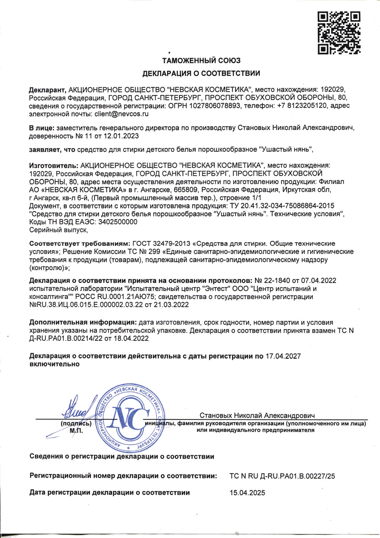 Стиральный порошок для всех типов стирки 6 кг, УШАСТЫЙ НЯНЬ Код товара: 603538 1 605,84 ₽ Купить Производитель:УШАСТЫЙ НЯНЬ Стиральный порошок был специально разработан для стирки белья и одежды детей любого возраста, в том числе и новорожденных. Состав: сульфаты (15-30%), фосфаты (15-30%), кислородсодержащие отбеливающие вещества (5-15%), анионные ПАВ (5-15%), карбонаты (5-15%), силикаты (5-15%), неионогенные ПАВ (не более 5%), пеногаситель (не более 5%), энзимы, оптические отбеливатели, отдушка.Соответствует: ГОСТ Р 52488-2005.Производство: РоссияВес/Объем: 6 кг/лСерия: LAUNDRYТип: универсальныйВид средства: порошокНазначение: для белого белья, для цветного бельяГипоаллергенный: даПодходит для новорожденных: даСодержит: ПАВ нефтехимического производства, фосфатыВид упаковки: полиэтиленовый пакетСрок годности: 48 месВес: 6,18 кгРазмер упаковки: 9.6 × 32.4 × 31 смОбъём: 0.0113 м3Промежуточная упаковка: 3 штТранспортная упаковка: 3 штШтрих-код: 4600697010151 Файлы Приложение-1.pdf Приложение-2.pdf Приложение-3.pdf Приложение-4.pdf Сертификат-1.jpg Сертификат-2.jpg Сертификат-3.jpg
