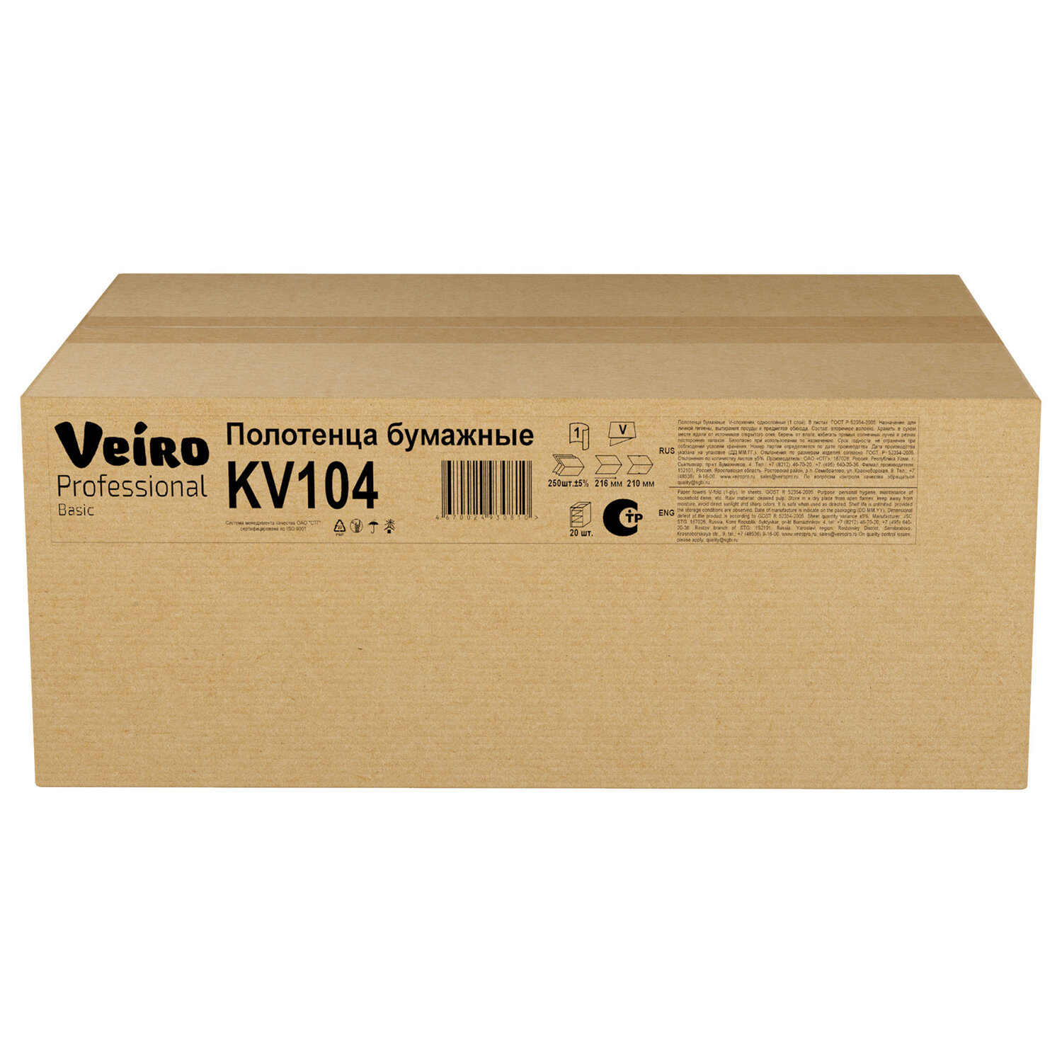 Полотенца бумажные 250 шт., VEIRO (H3) BASIC, 1-слойные, цвет натуральный, КОМПЛЕКТ 20 пачек, 21х21,6, V-сложение Код товара: 129533 2 343,9 ₽ Купить Производитель:VEIRO PROFESSIONAL Бумажные полотенца VEIRO Professional - лучший способ поддержания высокого уровня гигиены. V - самое популярное сложение полотенец, совместимое с большинством диспенсеров. Оптимальный выбор для мест с большой проходимостью. Производство: РоссияДиспенсерная система: H3Тип сложения: V-сложение (ZZ)Количество слоев: 1Сырье: макулатураЦвет бумаги: натуральныйТиснение: даДоля вторичного сырья: 100 %Перфорация: отдельные листыКоличество в спайке: 20 шт.Количество листов: 250 шт.Ширина листа: 21 смДлина листа: 21.6 смШирина пачки/рулона: 21.6 смВысота пачки/рулона: 12 смГлубина пачки/рулона: 10.5 смСочетаются с оборудованием других производителей: даАртикул: KV104Серия: BasicВес: 7,5 кгРазмер упаковки: 22.9 × 55.8 × 41.3 смОбъём: 0.0528 м3Промежуточная упаковка: 1 штТранспортная упаковка: 1 штШтрих-код: 4670024930810 Приложение-1.pdf Приложение-2.pdf Приложение-3.pdf