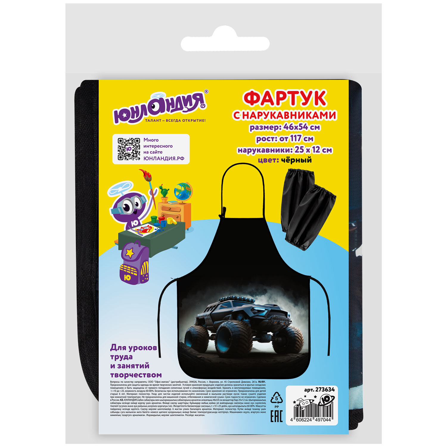 Фартук с нарукавниками для уроков труда ЮНЛАНДИЯ, регулировка по росту, 46х54 см, "Space driver" Код товара: 273634 301,05 ₽ Купить Производитель:ЮНЛАНДИЯ Фартук с нарукавниками для уроков труда ЮНЛАНДИЯ – незаменимая вещь для защиты одежды во время уроков труда и занятий творчеством в школе, детском саду и дома. Предусмотрен для многоразового использования. Фартук и нарукавники изготовлены из водоотталкивающего полиэстера. Стандартный размер фартука – 54х46 см, размер нарукавников – 25х12 см. Сверху завязки оснащены металлическим ушком для регулировки фартука по росту ребенка, подходит детям разных возрастов ростом от 117 см. Яркая печать коллекционного дизайна на фартуке. Нарукавники оснащены резинкой с обеих сторон. Фартук и нарукавники помогают защитить одежду ребенка от загрязнений во время занятий трудом и творчеством. Набор упакован в прозрачный пакет с европодвесом в сложенном виде. Заметная яркая этикетка с основной информацией о товаре выделяет его в магазине.Производство: РоссияПредназначение: для мальчиковКоличество карманов: 0 шт.Комплектуется нарукавниками: даШирина: 46 смВысота: 54 смВодоотталкивающая пропитка: даСерия: EXTRAВозрастная группа: 7-10 летДизайн: Space driverЦвет: черный/серыйМатериал: полиэстерУпаковка: прозрачный пакет с европодвесомВес: 51 грРазмер упаковки: 1.6 × 21.6 × 18.6 смОбъём: 0.0006 м3Промежуточная упаковка: 20 штТранспортная упаковка: 20 штШтрих-код: 4606224497044 Сертификат-1.jpg Сертификат-2.jpg Сертификат-3.jpg