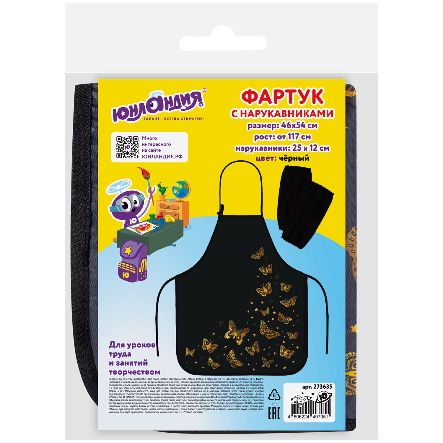 Фартук с нарукавниками для уроков труда ЮНЛАНДИЯ, регулировка по росту, 46х54 см, "Golden" Код товара: 273635 301,05 ₽ Купить Производитель:ЮНЛАНДИЯ Фартук с нарукавниками для уроков труда ЮНЛАНДИЯ – незаменимая вещь для защиты одежды во время уроков труда и занятий творчеством в школе, детском саду и дома. Предусмотрен для многоразового использования. Фартук и нарукавники изготовлены из водоотталкивающего полиэстера. Стандартный размер фартука – 54х46 см, размер нарукавников – 25х12 см. Сверху завязки оснащены металлическим ушком для регулировки фартука по росту ребенка, подходит детям разных возрастов ростом от 117 см. Яркая печать коллекционного дизайна на фартуке. Нарукавники оснащены резинкой с обеих сторон. Фартук и нарукавники помогают защитить одежду ребенка от загрязнений во время занятий трудом и творчеством. Набор упакован в прозрачный пакет с европодвесом в сложенном виде. Заметная яркая этикетка с основной информацией о товаре выделяет его в магазине.Производство: РоссияПредназначение: для девочекКоличество карманов: 0 шт.Комплектуется нарукавниками: даШирина: 46 смВысота: 54 смВодоотталкивающая пропитка: даСерия: EXTRAВозрастная группа: 7-10 летДизайн: GoldenЦвет: черный/золотойМатериал: полиэстерУпаковка: прозрачный пакет с европодвесомВес: 55 грРазмер упаковки: 1.7 × 22 × 17.7 смОбъём: 0.0006 м3Промежуточная упаковка: 20 штТранспортная упаковка: 20 штШтрих-код: 4606224497051 Сертификат-1.jpg Сертификат-2.jpg Сертификат-3.jpg