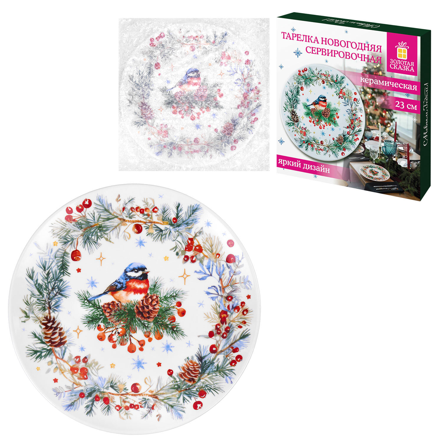 Тарелка сервировочная новогодняя 23 см, "Снегирь", каменная керамика, ЗОЛОТАЯ СКАЗКА Код товара: 592549 386,83 ₽ Купить Производитель:ЗОЛОТАЯ СКАЗКА Украсьте праздничный стол с сервировочной тарелкой ЗОЛОТАЯ СКАЗКА – сочетанием изящного дизайна, практичности и рождественского настроения. Эта тарелка станет ярким акцентом вашего интерьера и идеальным спутником в подготовке к встрече Нового года. Диаметр тарелочки 23 см делает тарелочку удобной для сервировки горячих закусок, новогодних салатов, традиционных блюд или сладостей – будь то семейный ужин под звуки боя курантов или вечер в кругу друзей. Тарелка подходит для использования в микроволновой печи и посудомоечной машине, что делает её особенно удобной в быту. Тарелочка упакована в красивую подарочную коробку, что делает тарелку отличным подарком для близких, друзей и коллег.Производство: КитайТип товара: тарелкаДизайн: СнегирьМатериал: каменная керамикаВысота: 3 смШирина: 23 смГлубина: 23 смДиаметр: 23 смУпаковка: картонная коробкаВес: 571 грРазмер упаковки: 3.9 × 23.9 × 24.6 смОбъём: 0.0027 м3Промежуточная упаковка: 10 штТранспортная упаковка: 10 штШтрих-код: 4606224504353 Сертификат-1.jpg Сертификат-2.jpg Сертификат-3.jpg