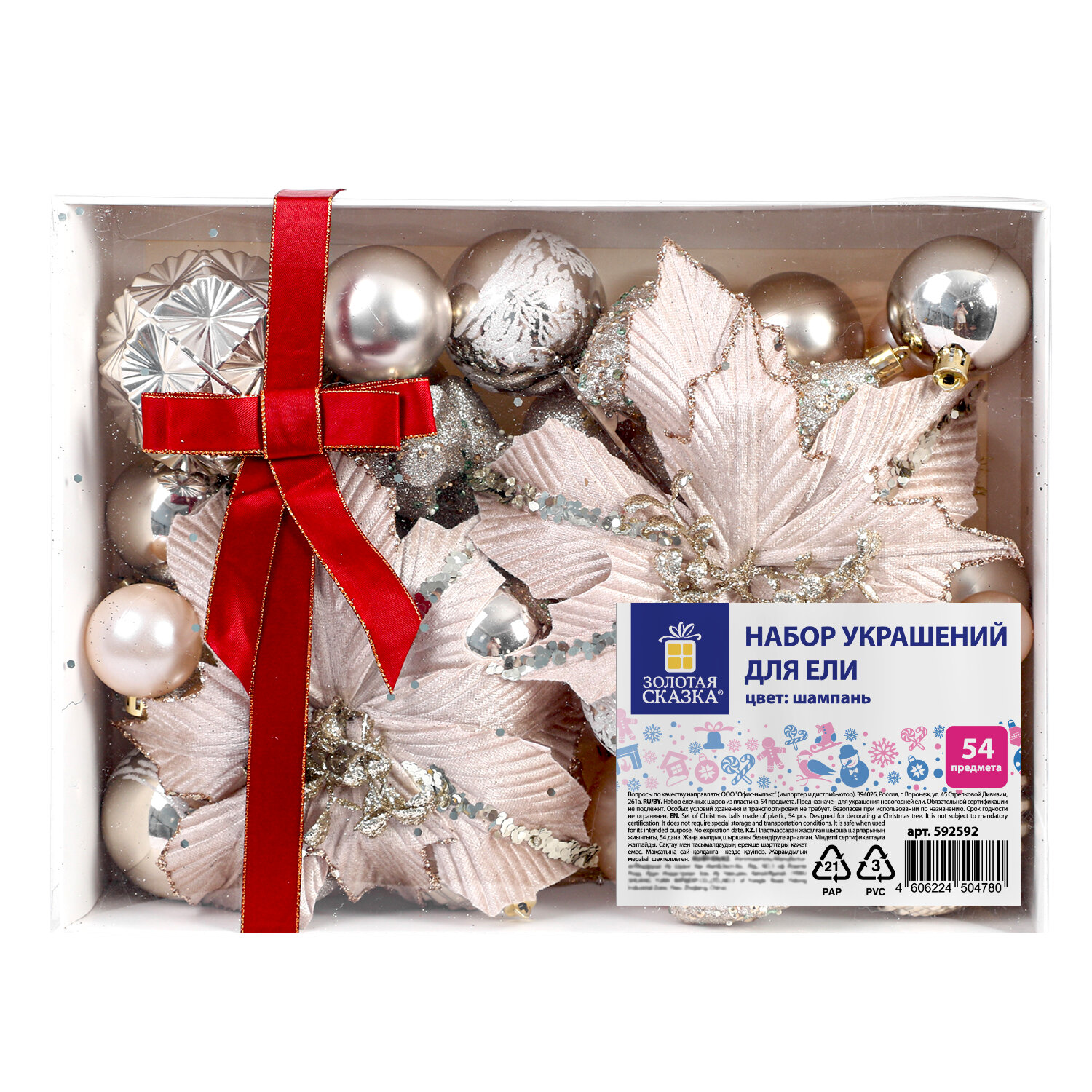 Шары елочные НАБОР 54 предмета "Light Champagne Style", пластик, шампань, ЗОЛОТАЯ СКАЗКА Код товара: 592592 1 365,64 ₽ Купить Производитель:ЗОЛОТАЯ СКАЗКА Наборы украшений для ели ЗОЛОТАЯ СКАЗКА позволят с легкостью и со вкусом украсить новогоднюю ель в едином стиле. Наборы упакованы в элегантную подарочную коробку. • В комплекте: - 2 украшения цвета шампань в форме цветка с глиттером (размером 24 см), - 3 шара цвета шампань с глянцевым эффектом и объемным рисунком (диаметром 8 см), - 5 шаров цвета шампань с матовым эффектом (диаметром 3 см), - 5 шаров цвета шампань с жемчужным эффектом (диаметром 3 см), - 3 шара цвета шампань с глянцевым эффектом и рисунком (диаметром 6 см), - 2 украшения в форме "звезды" цвета шампань с глиттером (размером 8х8 см), - 2 украшения в форме " шишки" цвета шампань с глиттером (размером 6х4 см), - 2 украшения в форме "ели" цвета шампань с глиттером (размером 7х5 см), - 4 шара цвета шампань с глиттером (диаметром 5 см), - 3 шара цвета шампань с глиттером (диаметром 4 см), - 3 шара цвета шампань с глянцевым эффектом (диаметром 5 см), - 3 шара цвета шампань с глянцевым эффектом (диаметром 4 см), - 5 шаров цвета шампань с глянцевым эффектом (диаметром 3 см). - 3 шара цвета шампань с жемчужным эффектом (диаметром 6 см), - 3 шара цвета шампань с жемчужным эффектом (диаметром 4 см), - 3 шара цвета шампань с матовым эффектом (диаметром 5 см), - 3 шара цвета шампань с матовым эффектом (диаметром 4 см). Украшения имеют петлю для подвешивания в верхней части. Их можно использовать для украшения новогодней ели или в качестве новогоднего сувенира. Набор упакован в картонную коробку с ПВХ-крышкой, дополнительно упакован в индивидуальный трехслойный гофрокороб.Производство: КитайТип украшения: набор украшений для елиКоличество в наборе: 54 шт.Материал: пластикЦвет: шампаньВес: 655 грРазмер упаковки: 9.5 × 33.2 × 25.9 смОбъём: 0.0097 м3Промежуточная упаковка: 6 штТранспортная упаковка: 6 штШтрих-код: 4606224504780 Файлы Сертификат-1.jpg Сертификат-2.jpg Сертификат-3.jpg Сертификат-4.jpg Сертификат-5.jpg Сертификат-6.jpg Сертификат-7.jpg Сертификат-8.jpg Сертификат-9.jpg Сертификат-10.jpg Сертификат-11.jpg Сертификат-12.jpg Сертификат-13.jpg Сертификат-14.jpg Сертификат-15.jpg Сертификат-16.jpg Сертификат-17.jpg Сертификат-18.jpg Сертификат-19.jpg Сертификат-20.jpg Сертификат-21.jpg Сертификат-22.jpg Сертификат-23.jpg Сертификат-24.jpg Сертификат-25.jpg Сертификат-26.jpg